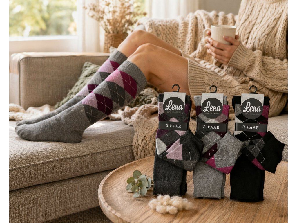 Měkké a hřejivé dámské podkolenky s podílem vlny do chladných dnů. V balení najdete 2 páry – jedny s kostkovaným vzorem a jedny hladké jednobarevné. Uvedená cena je za 2 páry.