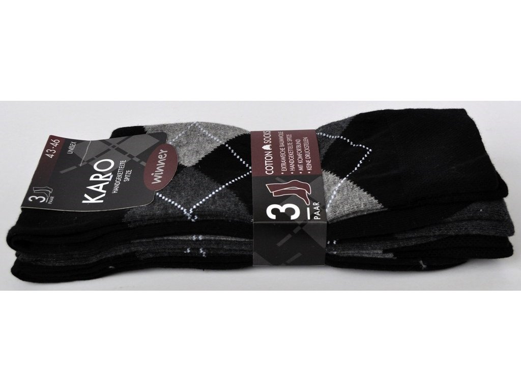 Pánske bavlnené elastické ponožky WINNER s károvým vzorom, komfortná retiazková špička