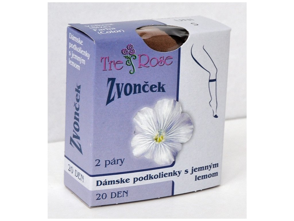 Jemné dámské jednobarevné podkolenky Zvonček 2 páry 20DEN. Balení 2 páry v krabičce.