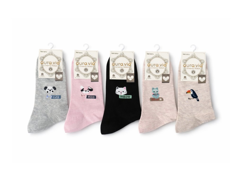 Dámske jemné bavlnené ponožky so zvieracím vzorom. 1 pár